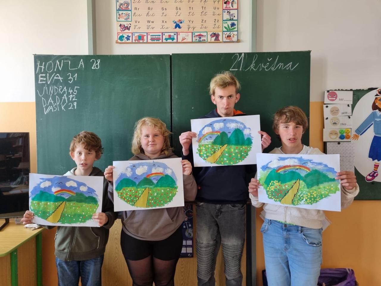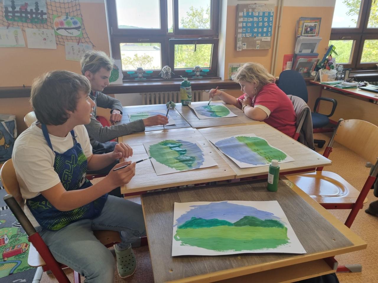 V pátek 23.5.si žáci třídy C vyzkoušeli profesi malířů obrazů. V rámci VV pracovali s barvami v různých netradičních technikách, jako např. malba kartáčkem na zuby. Výsledkem byl obrázek, který byl žáky přiřazen k létu.