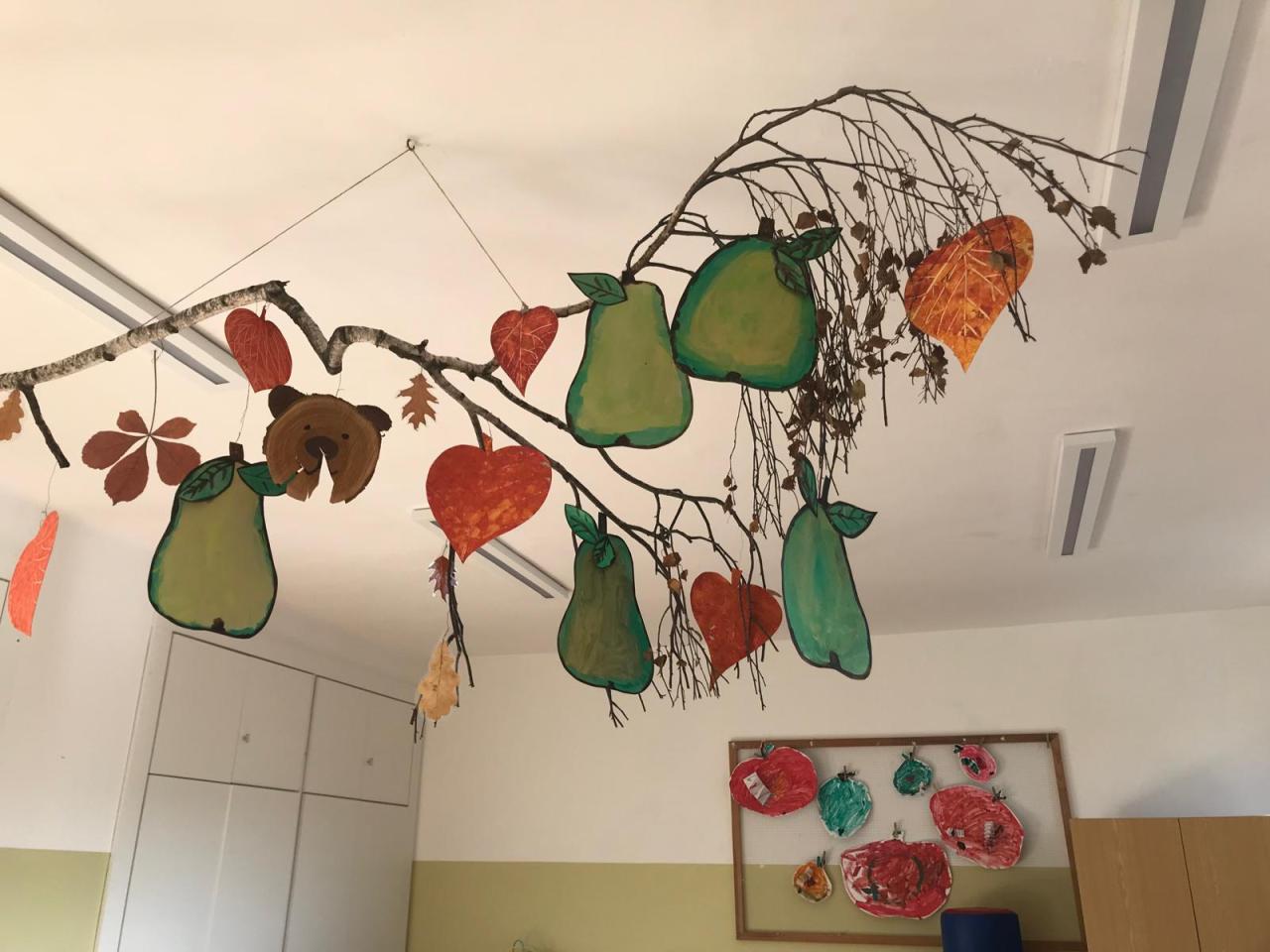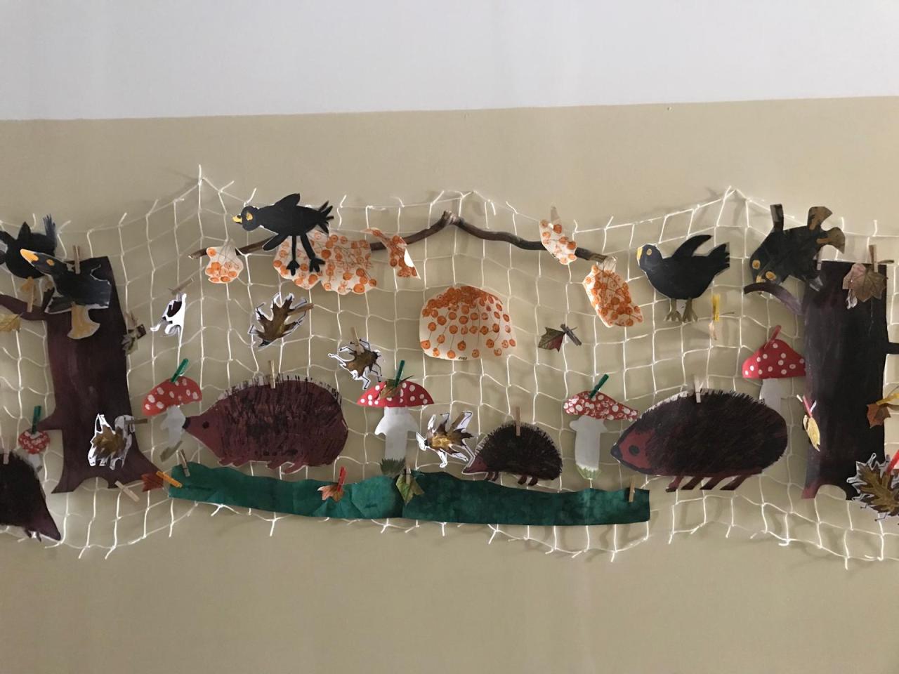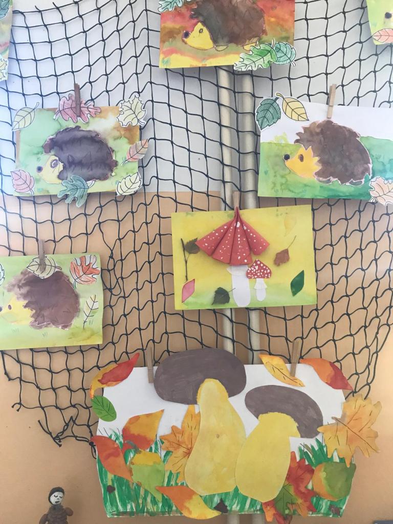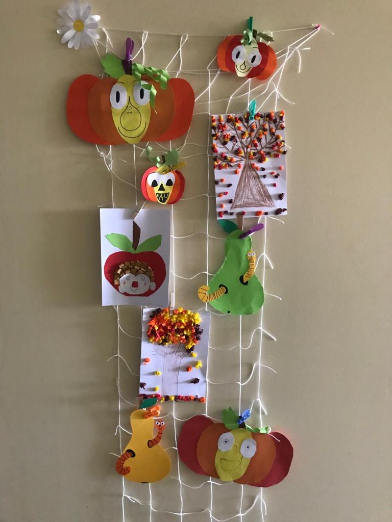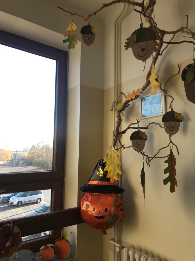 Všichni žáci se společně s učiteli a asistenty podílejí na výzdobě našich chodeb. Hlavní roli tentokrát hraje podzim.
