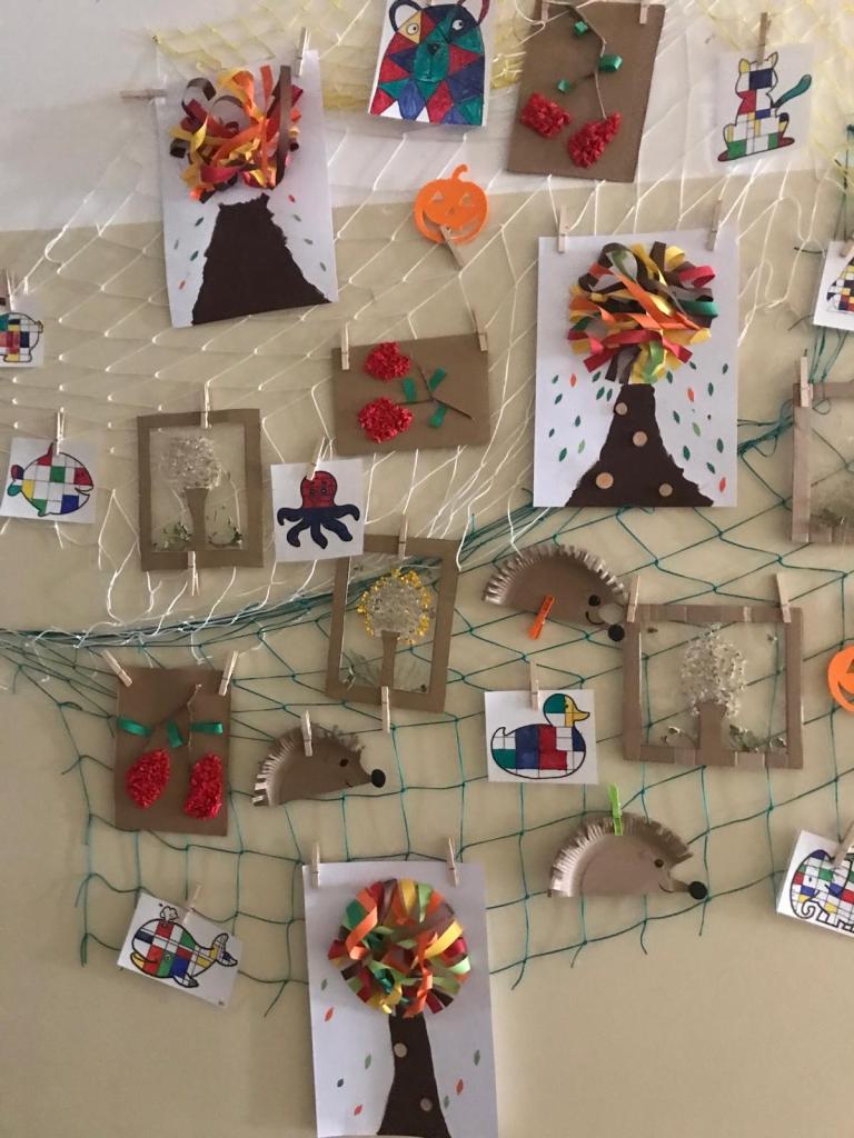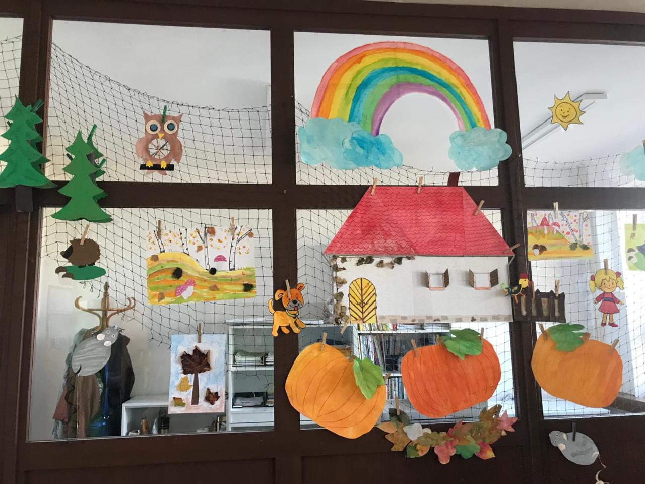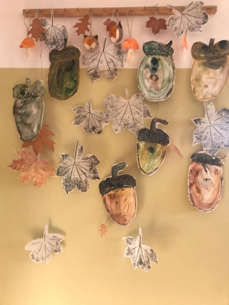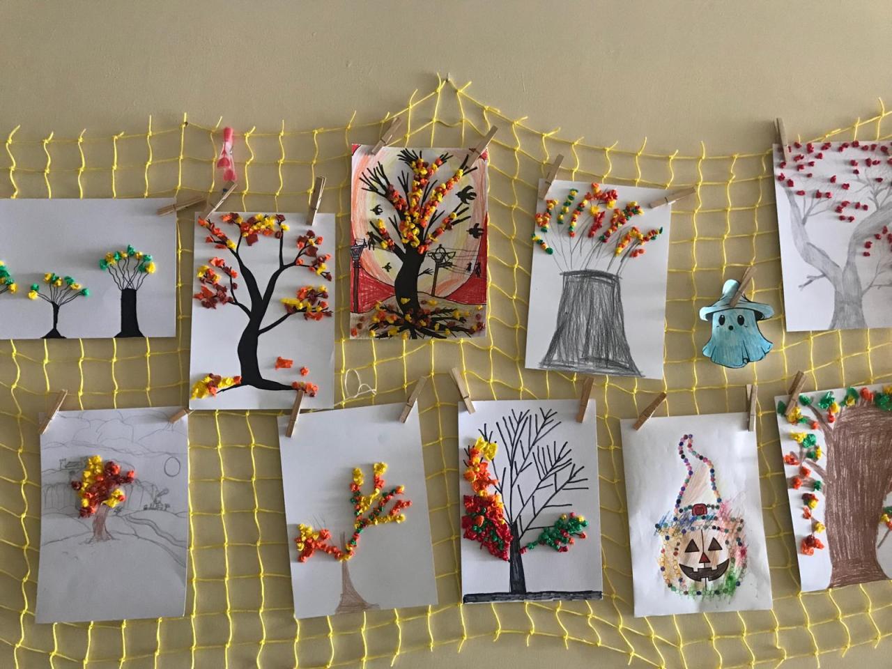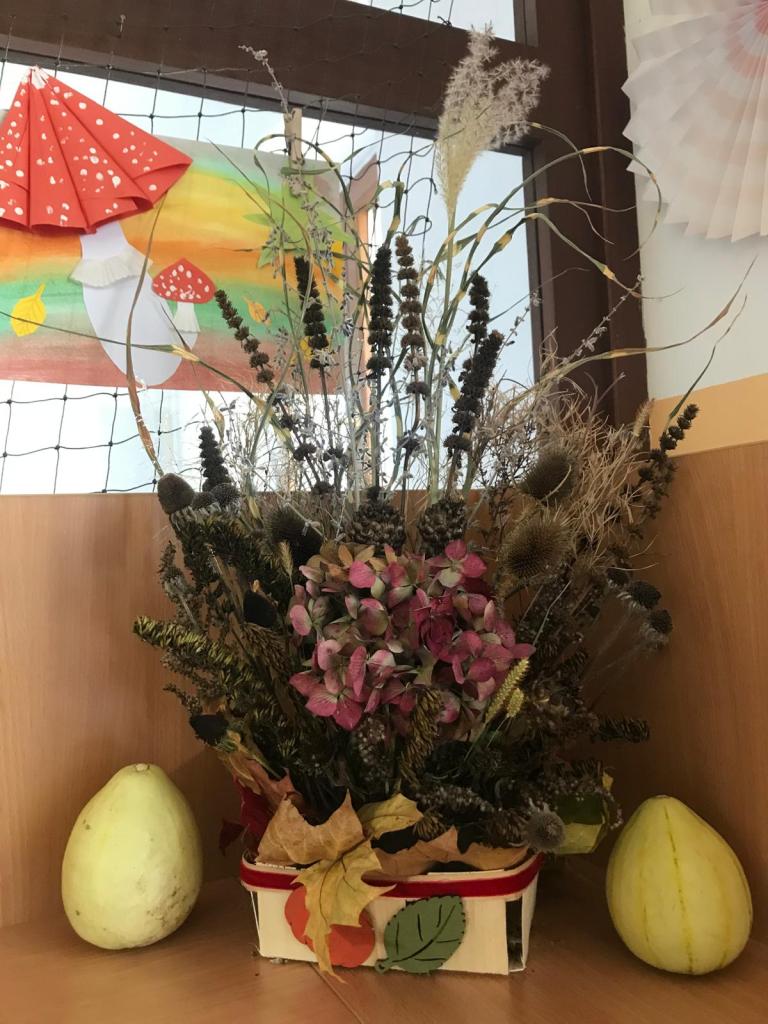Všichni žáci se společně s učiteli a asistenty podílejí na výzdobě našich chodeb. Hlavní roli tentokrát hraje podzim.